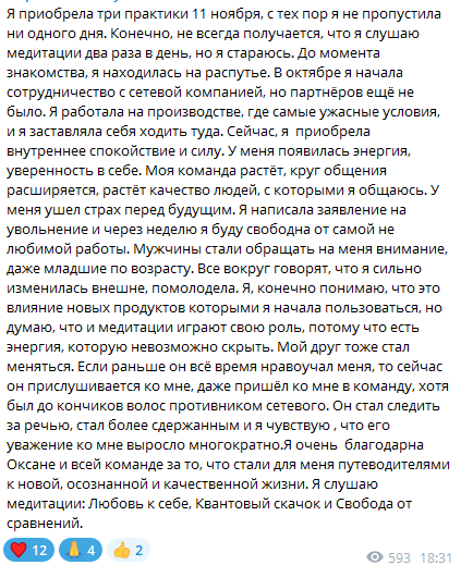 Ниже скрины отзывов медитирующих, у кого есть данная немедитация: